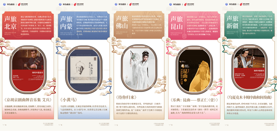 “乘国航·听非遗:声旅中国”特色内容专题,是一次传统文化“活态传承”的创新之举——通过航空场景的高频触达,让非遗音乐从“展览馆”融入“旅途日常”。未来,我们期待以“声旅中国”为起点,有更多目的地音乐企划涌现,让非物质文化遗产在云端焕发生机。用户可提前在华为音乐收藏目的地专辑,让每一次飞行都成为文化之旅的序曲。